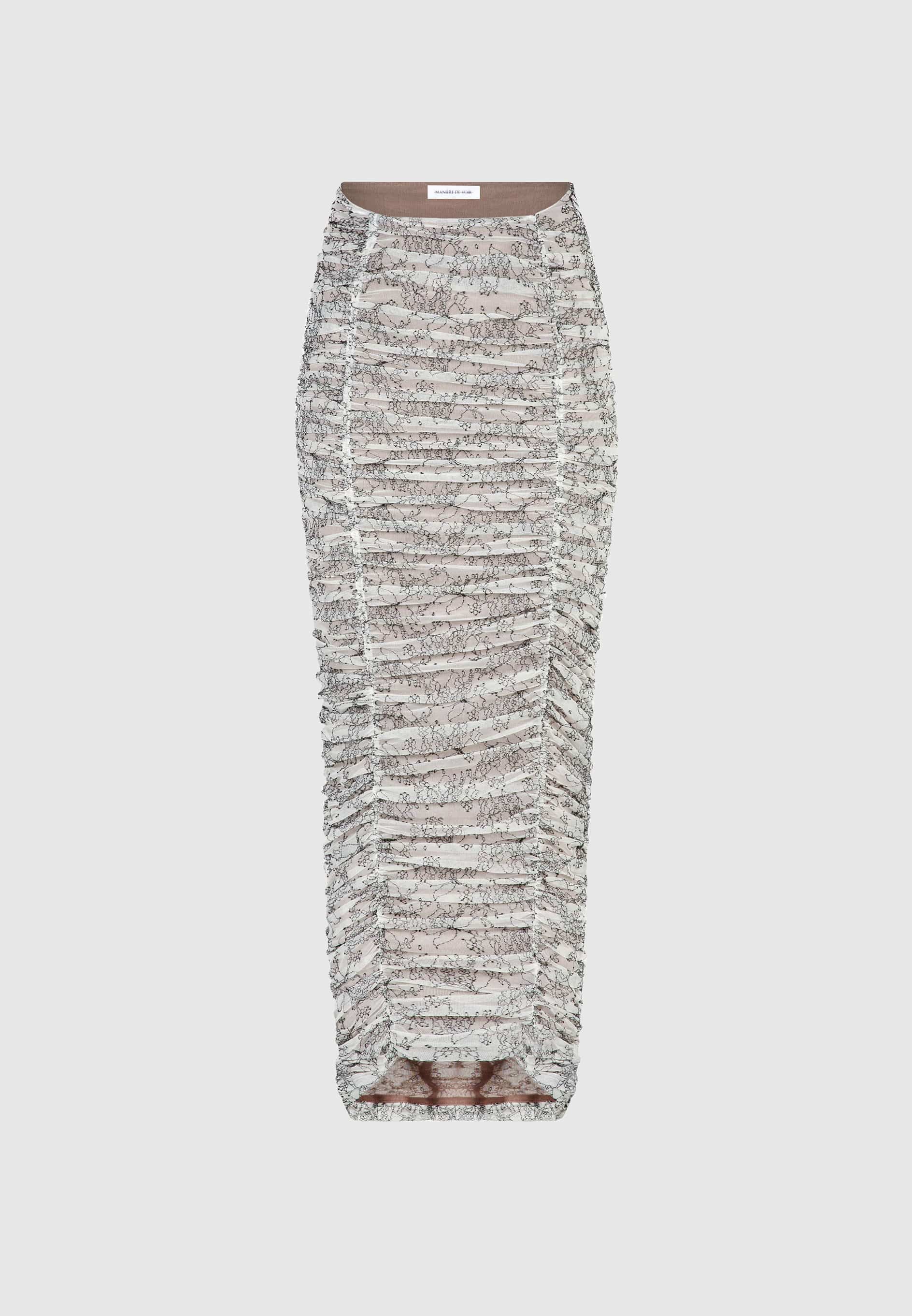 Ruched Lace Asymmetric Midaxi Skirt - Off White